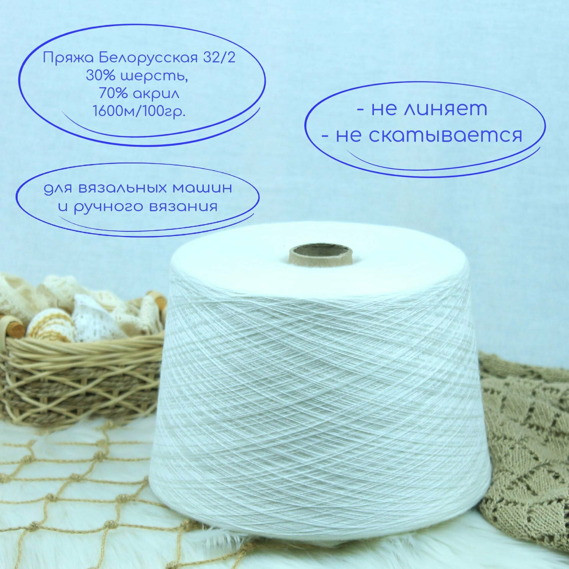 Белорусская пряжа на бобинах, цвет белый "Снежинка", вес 500г информация: