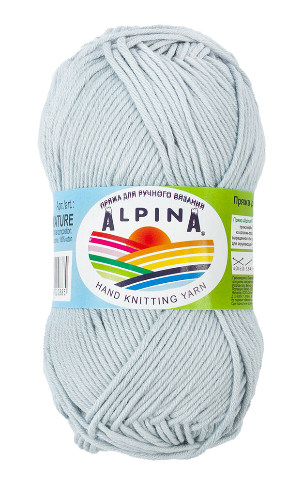 10 цен на Пряжа ALPINA "NATURE" 100% хлопок 50 г 105 м №003 бл. голубой