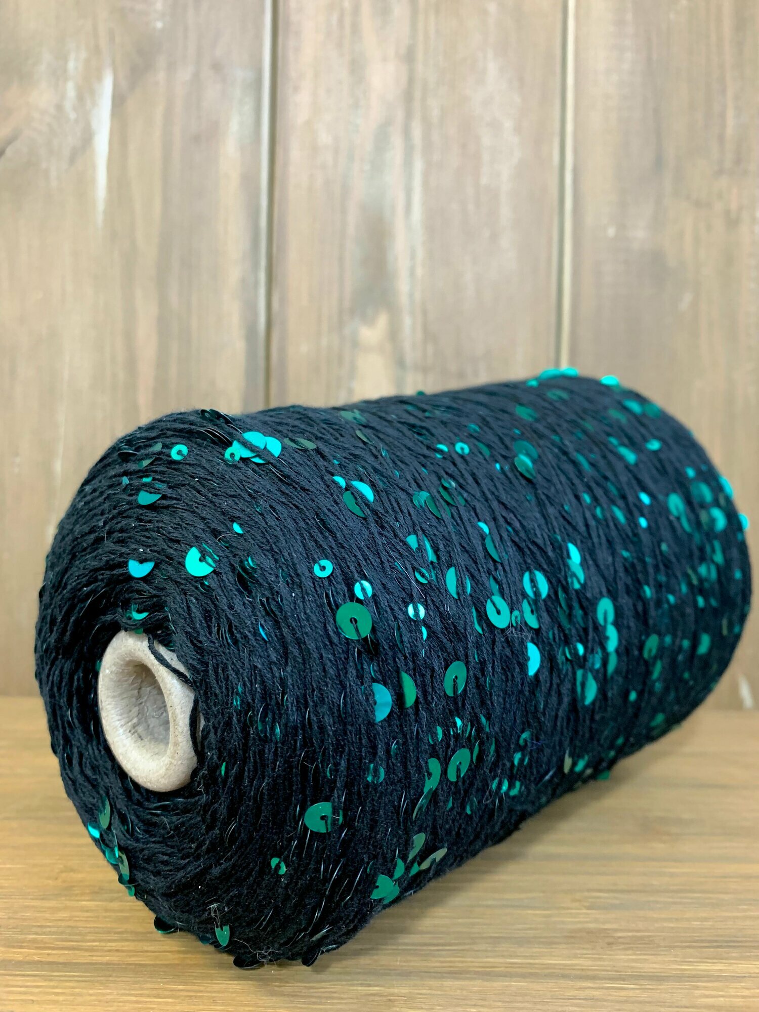 Королевские пайетки на хлопке 6+3 мм, 100% хлопок, 320 м в 100 гр, 50 гр, Черный пайетки зеленые информация: