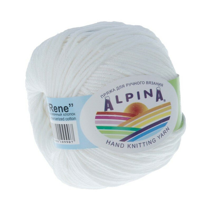 Пряжа ALPINA "RENE" 100% мерсеризованный хлопок 50 г 105 м №002 белый информация: