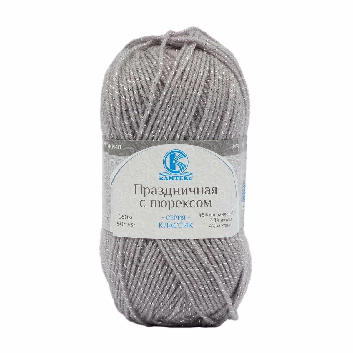 Пряжа для вязания Камтекс 'Праздничная с люрексом' 50г, 160м (кашмилон, акрил, метанит) (168 светло-серый), 10 шт 915 ₽