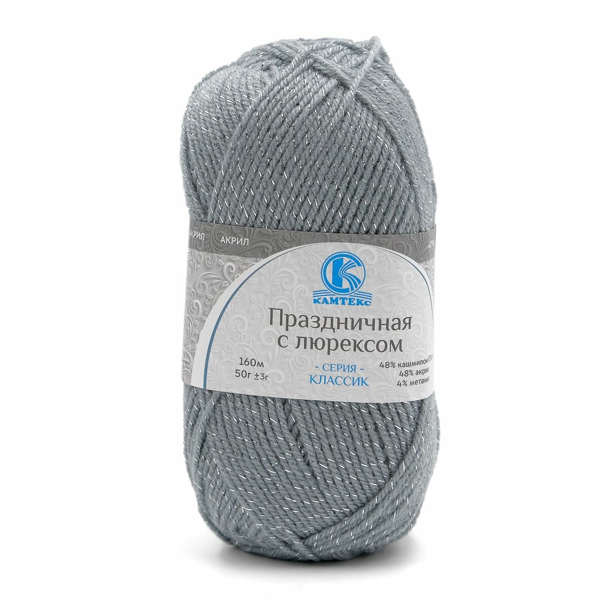 Пряжа для вязания Камтекс 'Праздничная с люрексом' 50г, 160м (кашмилон, акрил, метанит) (168 светло-серый), 10 шт информация: