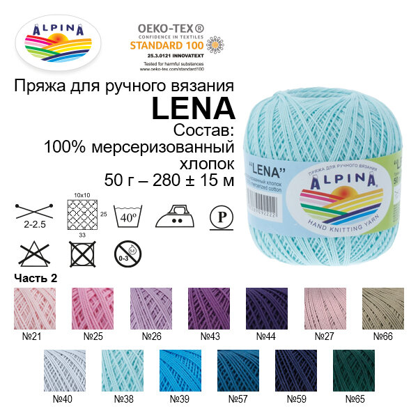 Отзывы на Пряжа Alpina "LENA" 10 шт. по 50 г 100% мерсеризованный хлопок 280 м №66 св. хаки