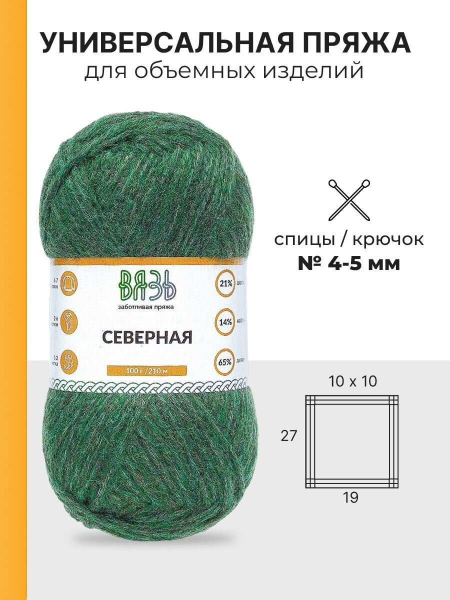 10 цен на Пряжа для вязания Вязь 'Северная' 100г, 210м (21% шерсть, 14% нейлон, 65% акрил) (09 зеленый), 3 мотка