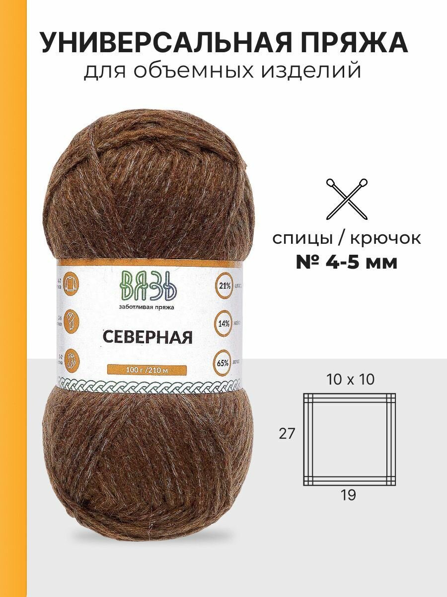 10 цен на Пряжа для вязания Вязь 'Северная' 100г, 210м (21% шерсть, 14% нейлон, 65% акрил) (05 коричневый), 3 мотка