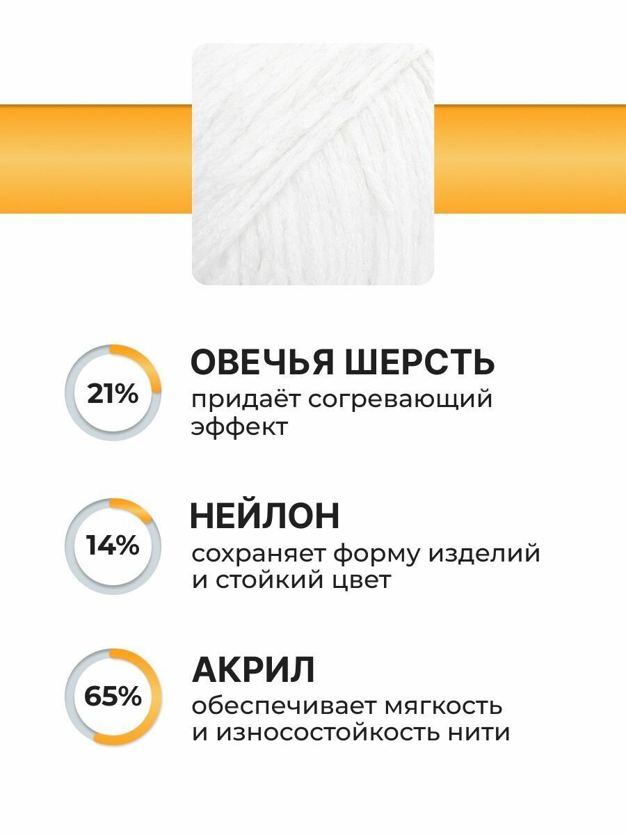 Пряжа для вязания Вязь 'Северная' 100г, 210м (21% шерсть, 14% нейлон, 65% акрил) (01 белый), 3 мотка информация: