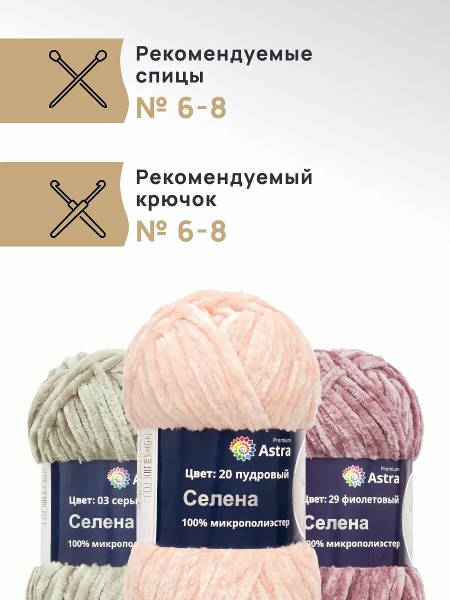 Пряжа для вязания Astra Premium 'Селена' 100г, 68м (100% микрополиэстер) (20 пудровый), 3 мотка информация: