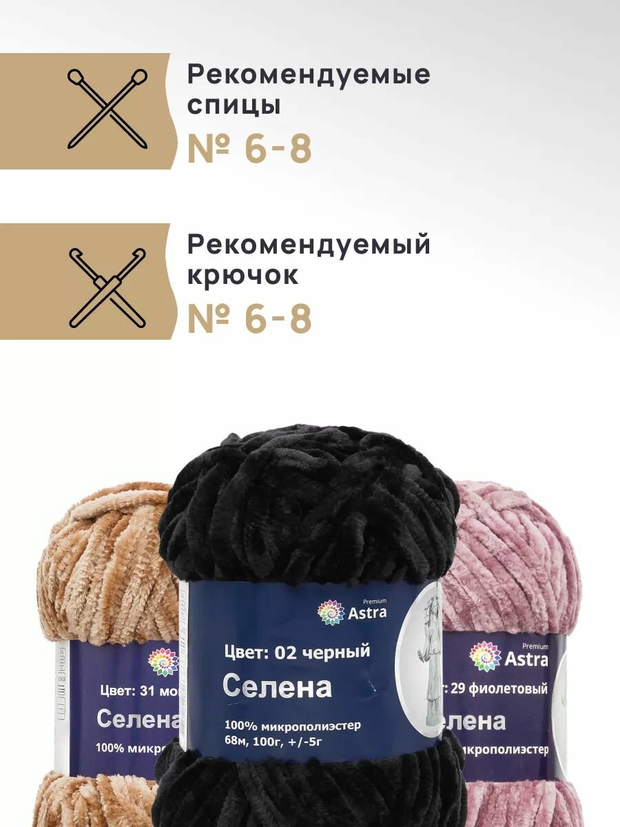 Пряжа для вязания Astra Premium 'Селена' 100г, 68м (100% микрополиэстер) (02 черный), 3 мотка информация: