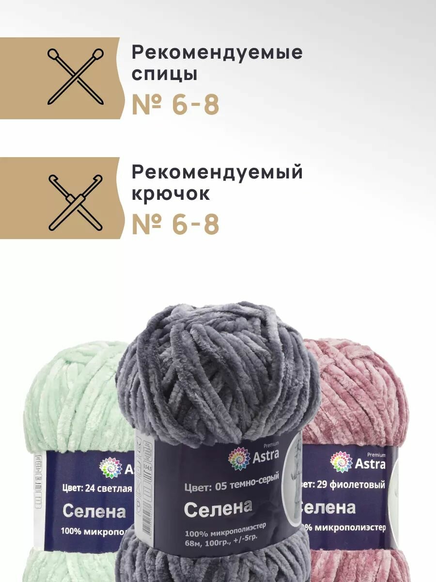 Пряжа для вязания Astra Premium 'Селена' 100г, 68м (100% микрополиэстер) (05 темно-серый), 3 мотка информация: