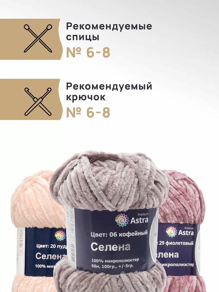 Пряжа для вязания Astra Premium 'Селена' 100г, 68м (100% микрополиэстер) (06 кофейный), 3 мотка информация: