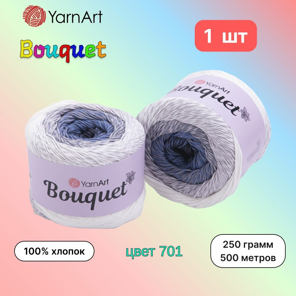 Пряжа YarnArt Bouquet Бел-сер-джинс (701) 1 моток 250г/500м (100% хлопок) ярнарт букет информация: