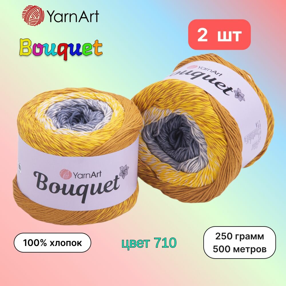 10 цен на Пряжа YarnArt Bouquet Шафран-серый (710) 2 мотка 250г/500м (100% хлопок) ярнарт букет