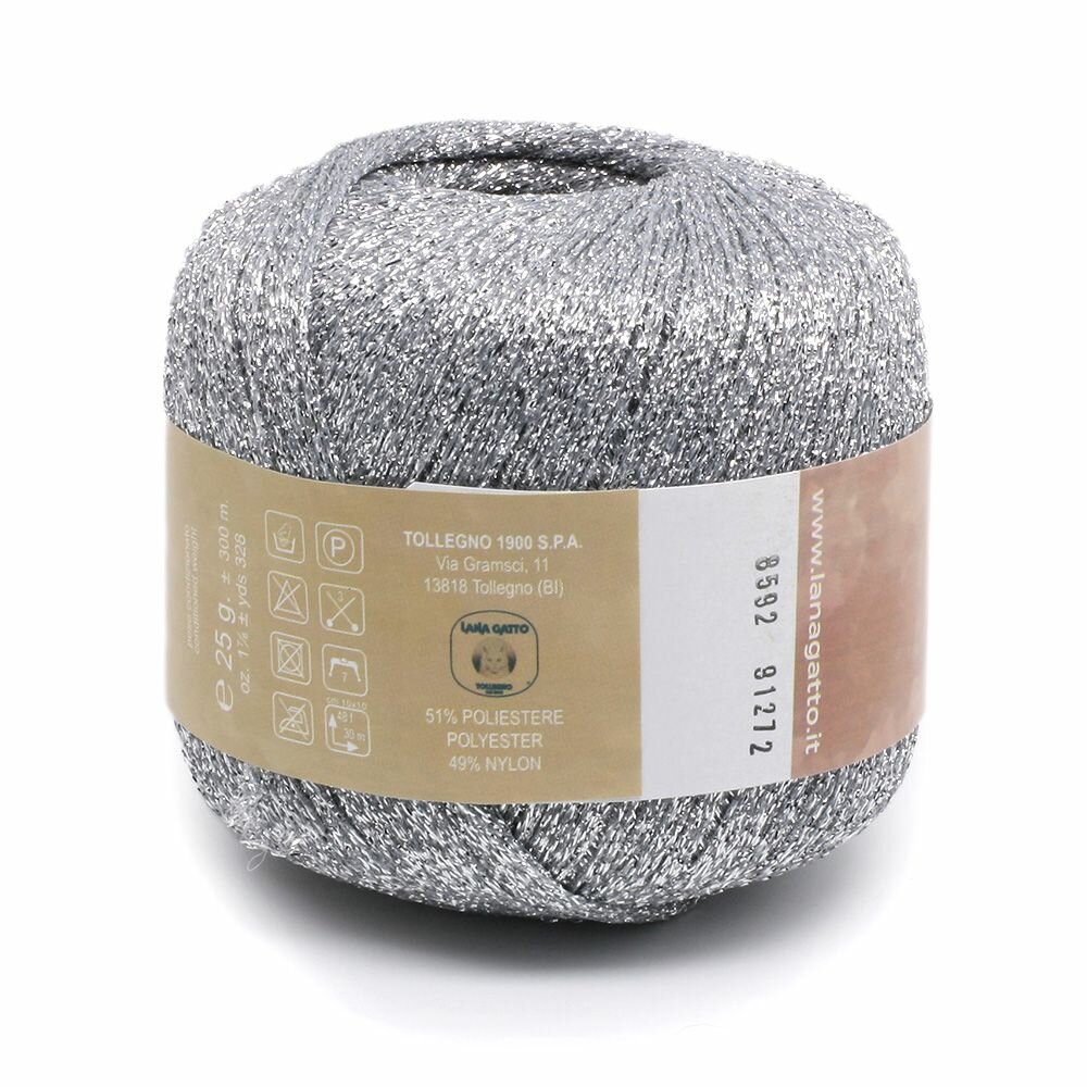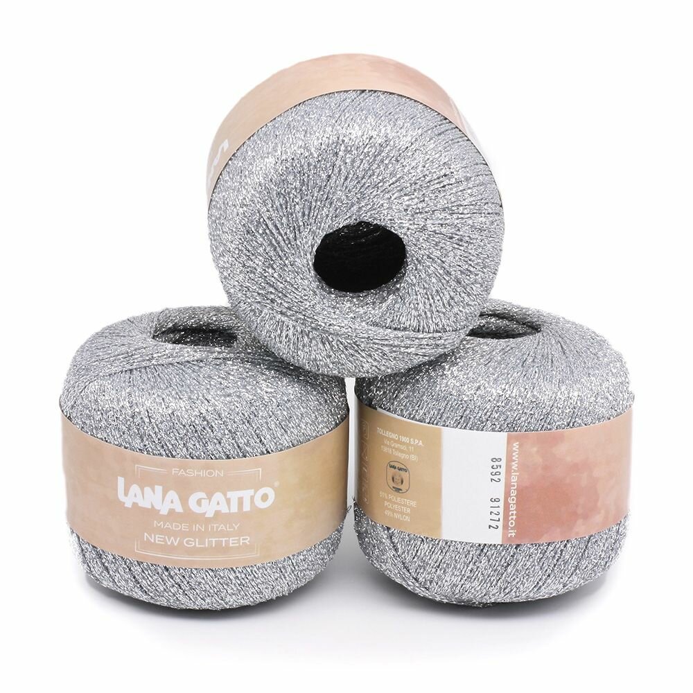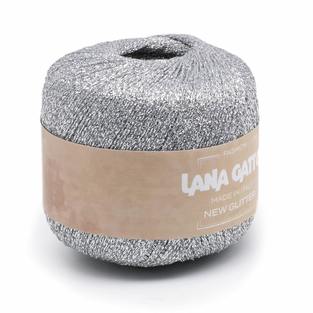 Пряжа Lana Gatto New Glitter пряжа для вязания с люрексом Полиэстер: 51%, Нейлон: 49% Цвет: 8592, Серебристый(1 моток) информация: