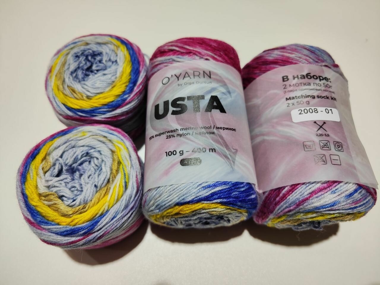 Отзывы на Пряжа носочная USTA O'YARN 100г.(2*50г) арт.2008 состав: 75 % шерсть меринос, 25% нейлон Метраж: 400 м./100 г.