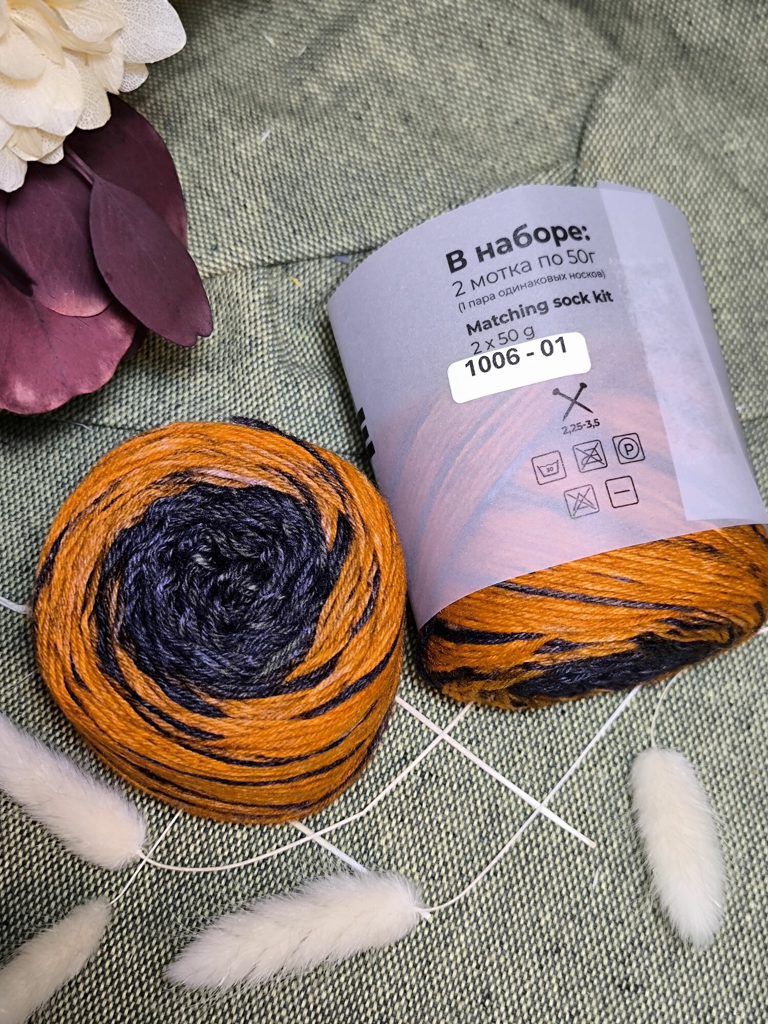 Пряжа носочная SALUTE O'YARN 100г.(2*50г) арт.1006 состав: 75 % шерсть меринос, 25% нейлон Метраж: 400 м./100 г. информация: