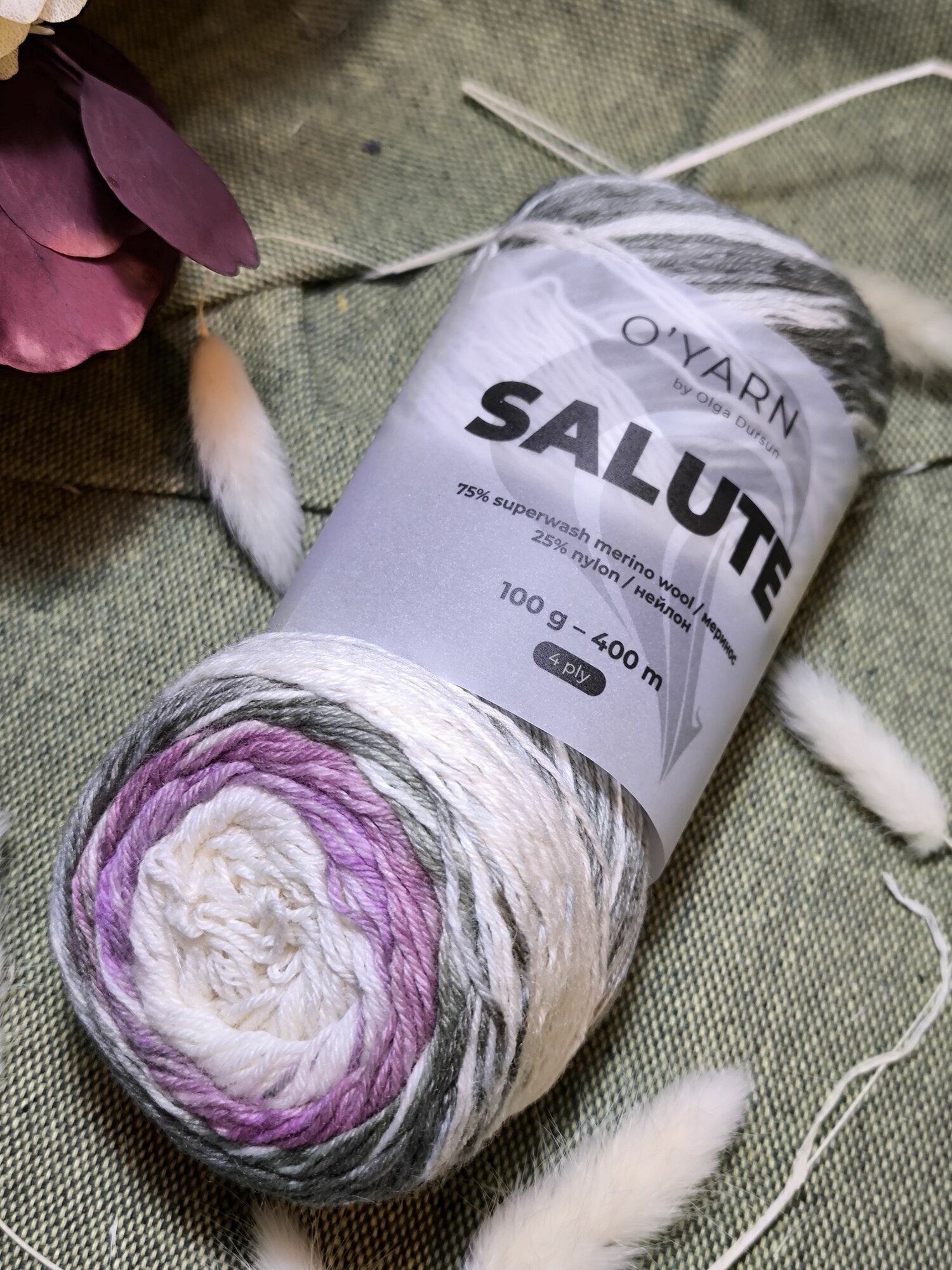 Отзывы на Пряжа носочная SALUTE O'YARN 100г.(2*50г) арт.1009 состав: 75 % шерсть меринос, 25% нейлон Метраж: 400 м./100 г.