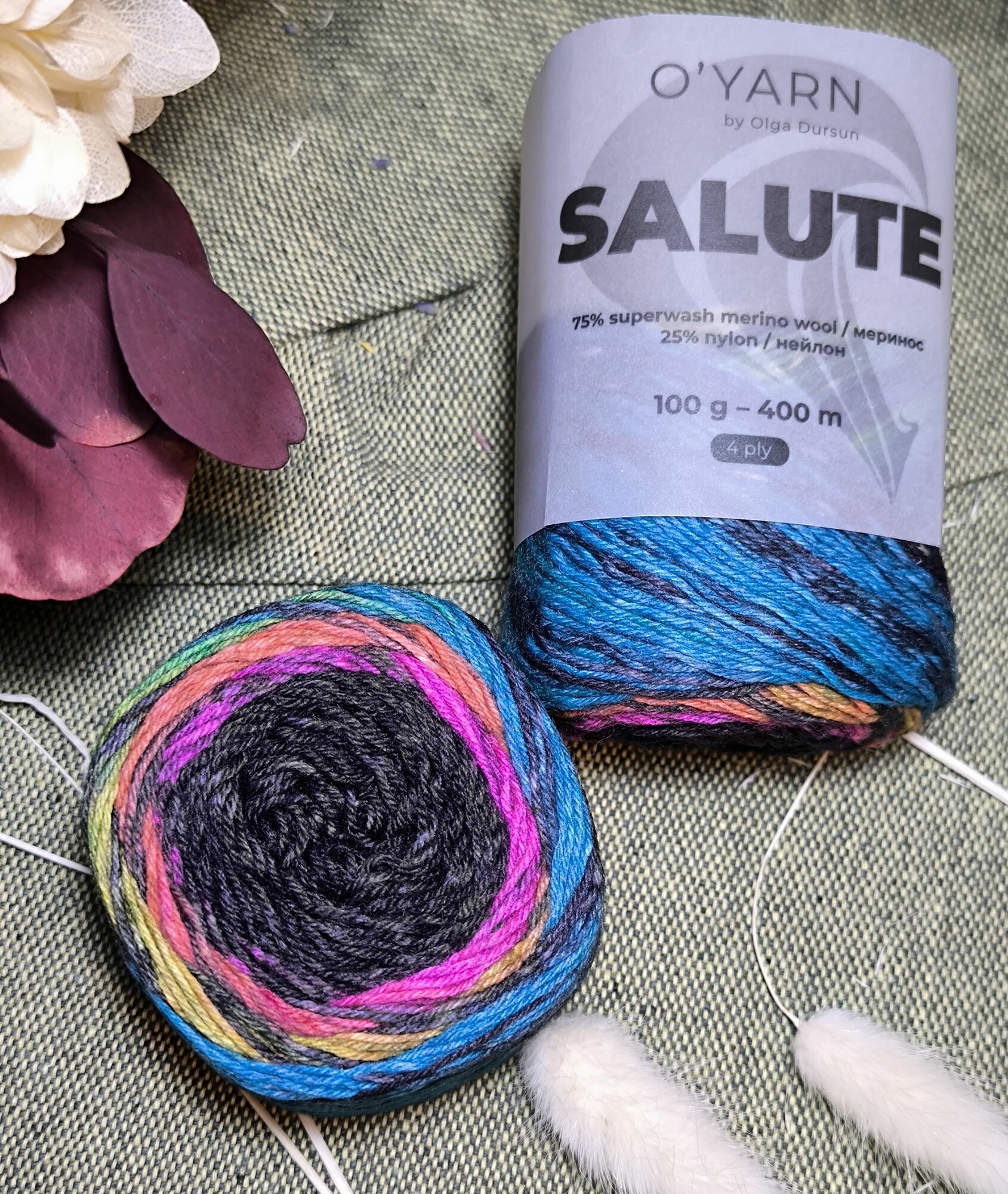 Пряжа носочная SALUTE O'YARN 100г.(2*50г) арт.1009 состав: 75 % шерсть меринос, 25% нейлон Метраж: 400 м./100 г. 1 572 ₽
