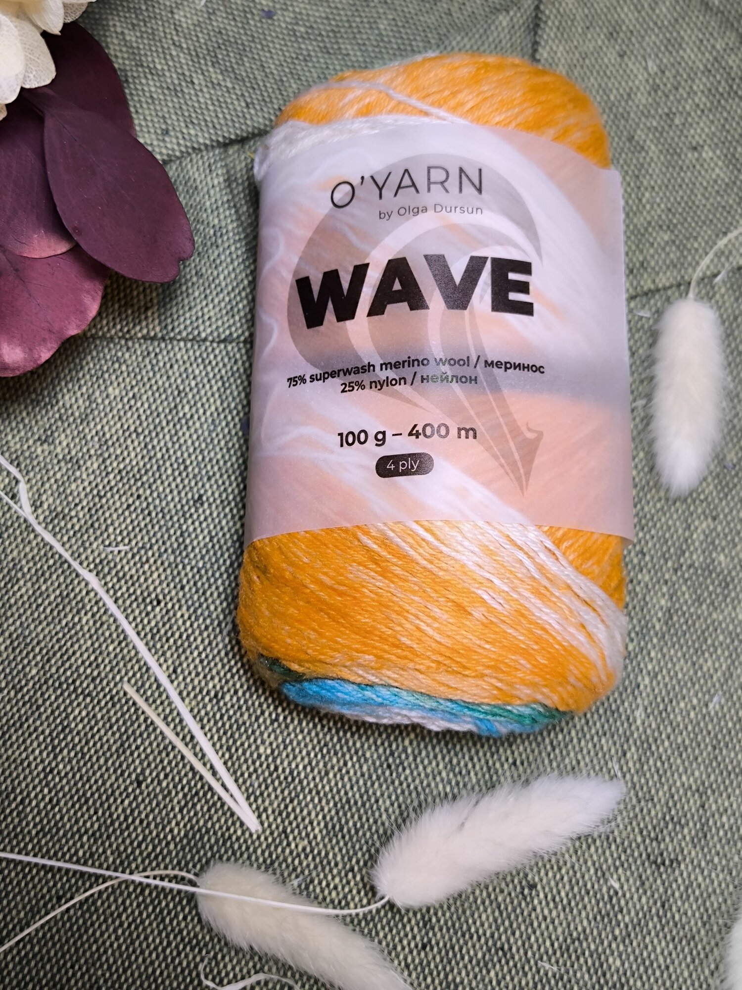 Пряжа носочная WAVE O'YARN 100г.(2*50г) арт.1107 состав: 75 % шерсть меринос, 25% нейлон Метраж: 400 м./100 г. информация: