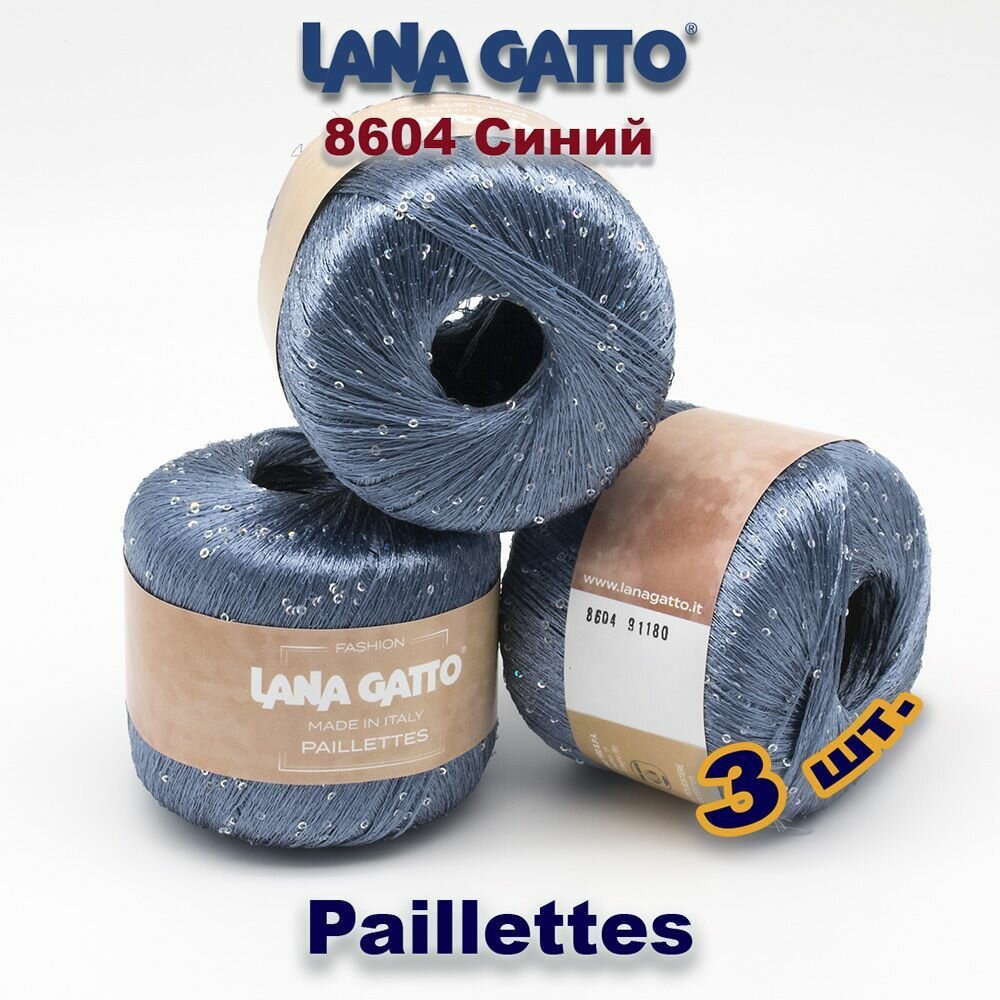 10 цен на Пряжа Lana Gatto Paillettes// пряжа для вязания с пайетками// Полиэстер: 100% Цвет: 8604, Синий (3 мотка)