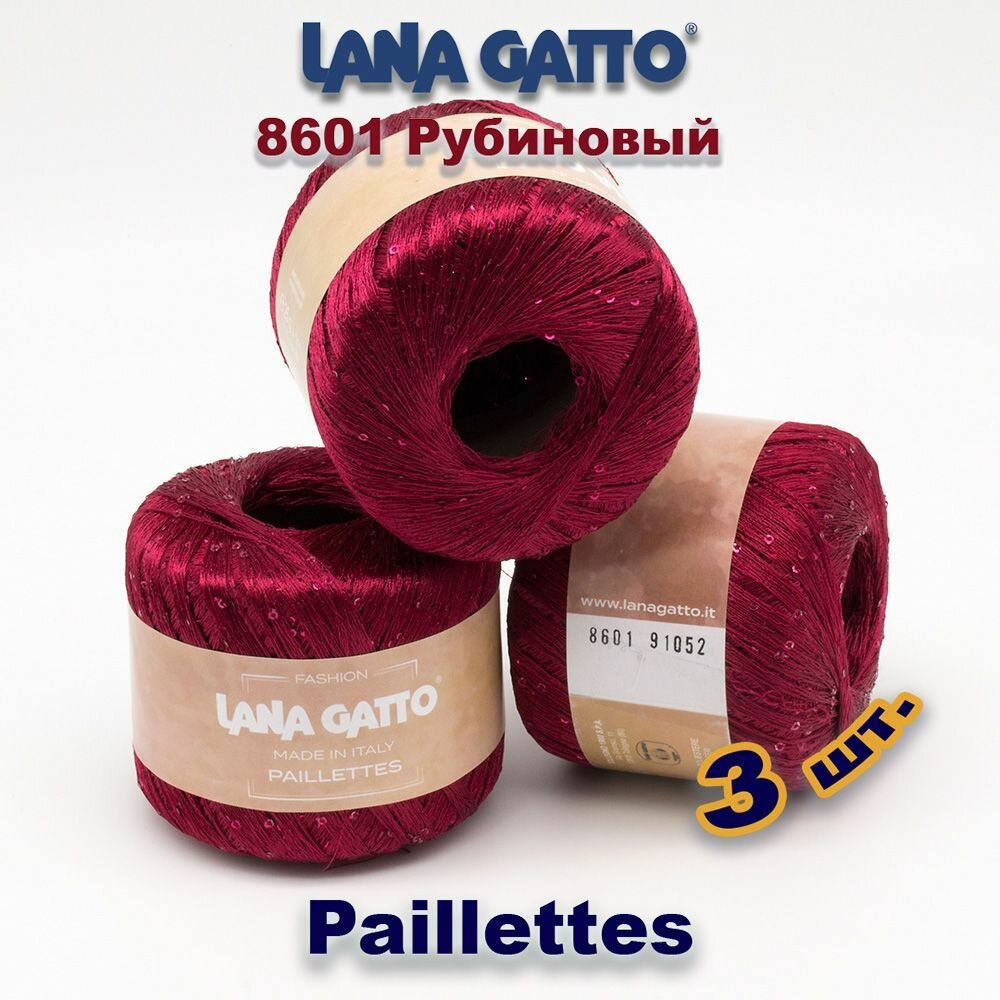 10 цен на Пряжа Lana Gatto Paillettes// пряжа для вязания с пайетками //Полиэстер: 100% Цвет: 8601, Рубиновый (3 мотка)