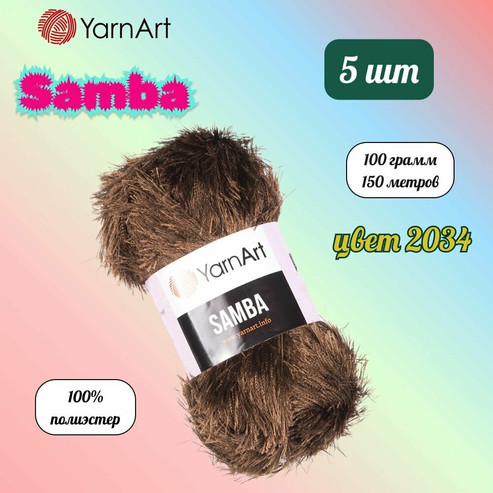 10 цен на Пряжа YarnArt Samba Коричневый (2034) 5 мотков 100 г/150 м (100% полиэстер) ярнарт самба