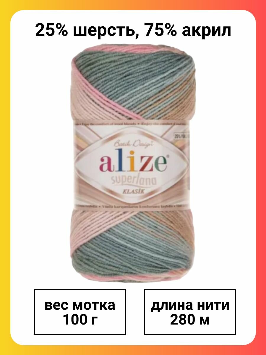 Пряжа Alize Superlana Klasik Batik 2970, 100 г, 280 м, 5 штук информация: