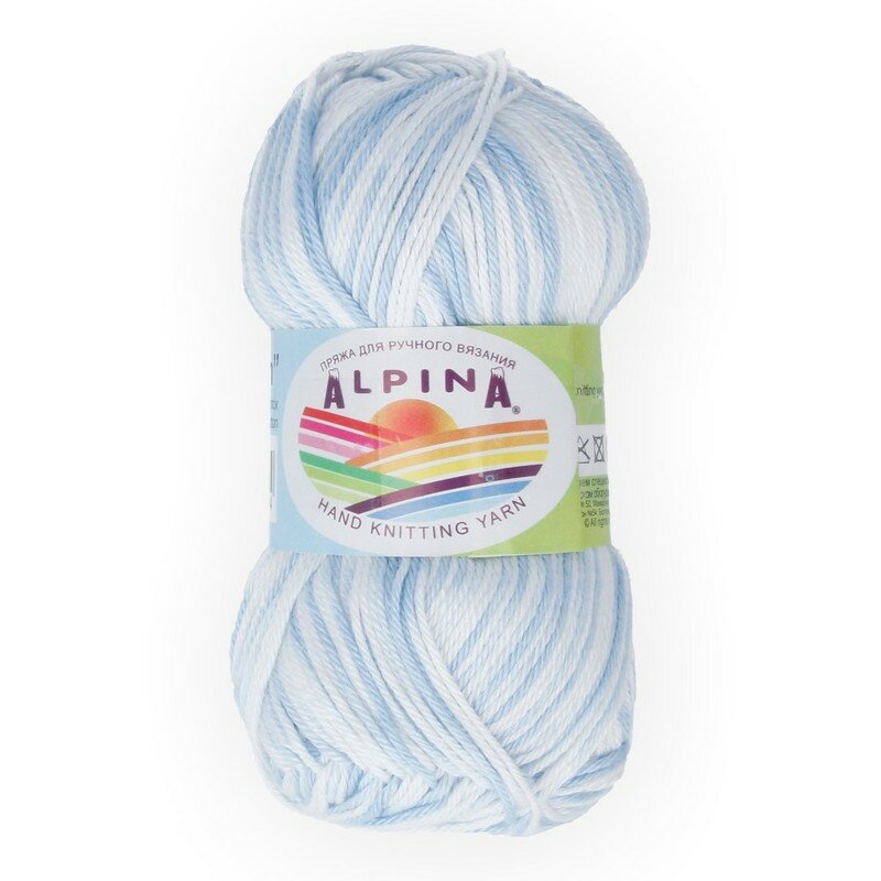 10 цен на Пряжа ALPINA "KATRIN" 100% мерсеризованный хлопок 50 г 140 м №030 белый-голубой