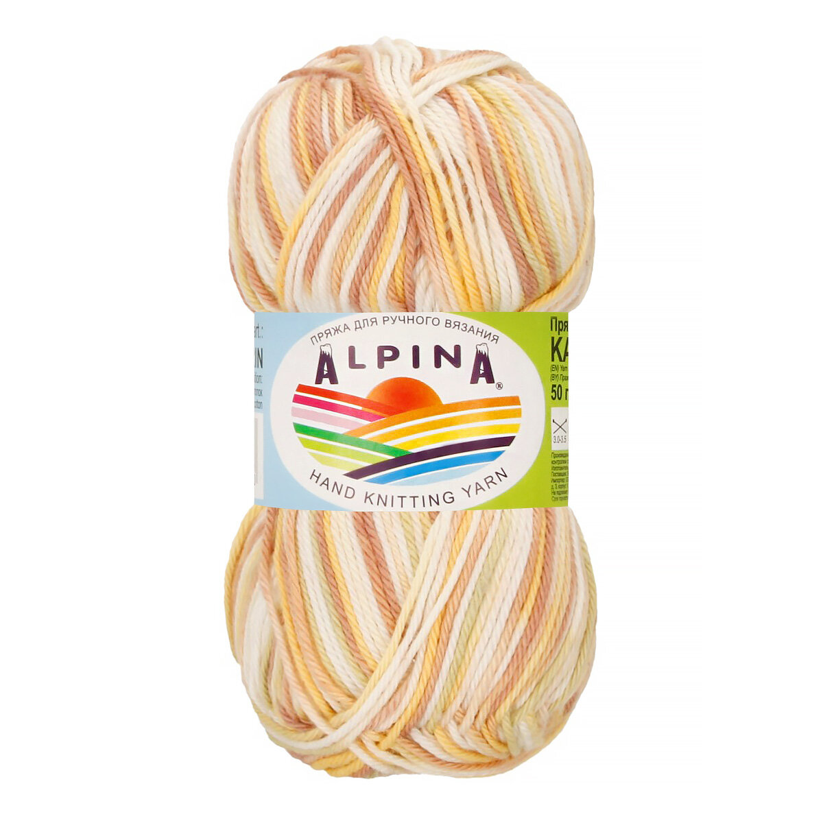 Пряжа ALPINA "KATRIN" 100% мерсеризованный хлопок 50 г 140 м №022 белый-желтый-гр. розовый информация: