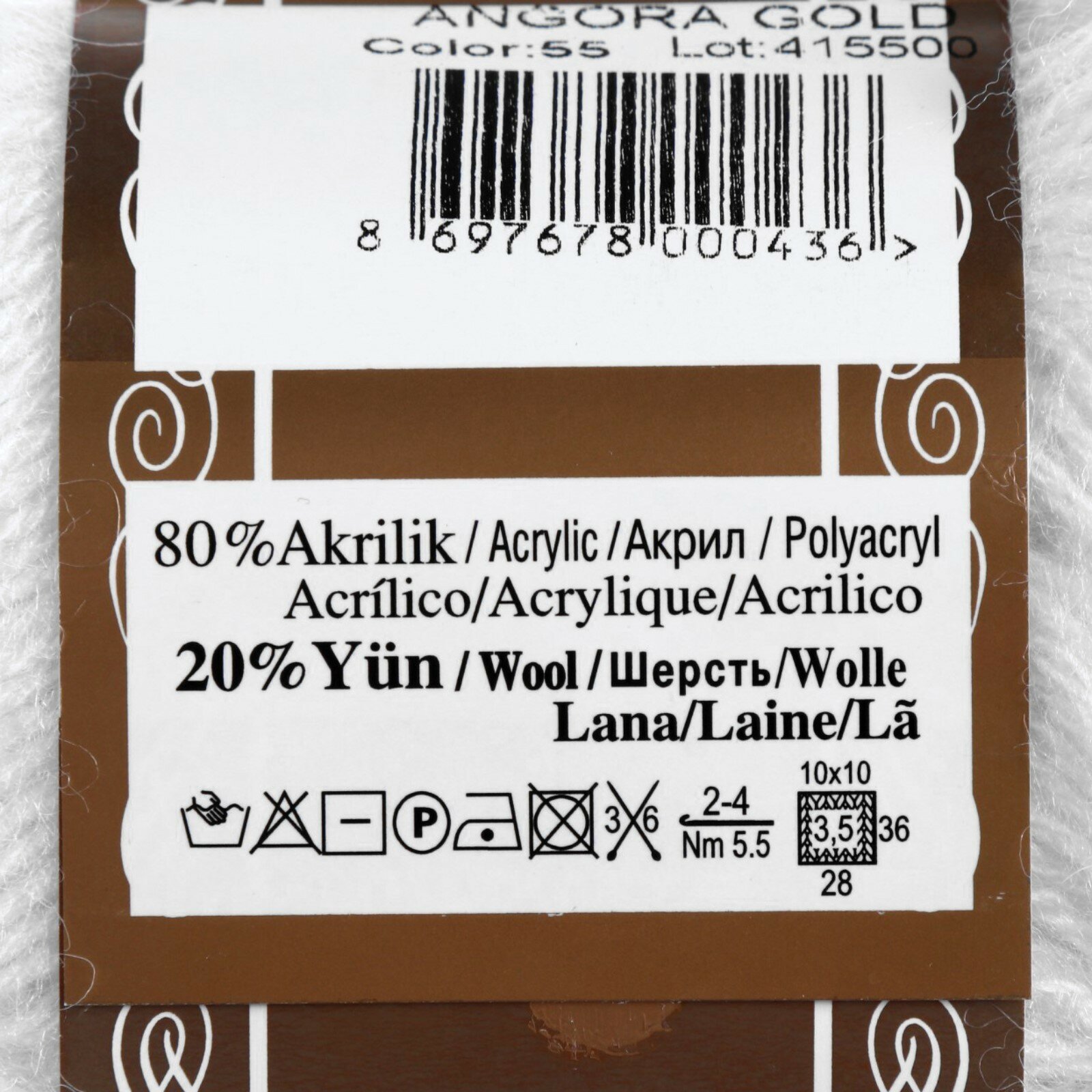 Пряжа "Ангора Голд", цвет: 55 - Белый, 1 шт, Шерсть 20%, Акрил 80%, 100 гр. 550 м. информация: