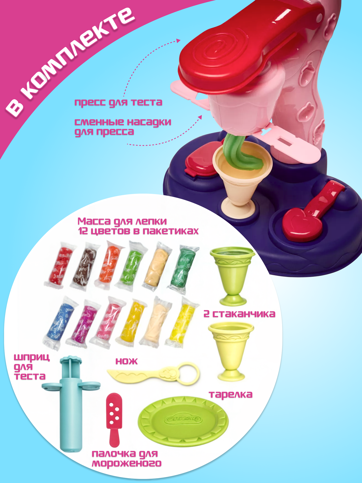 Отзывы на Детский игровой набор для лепки из пластилина Фабрика мороженого, 12 цветов теста, пресс, формочки