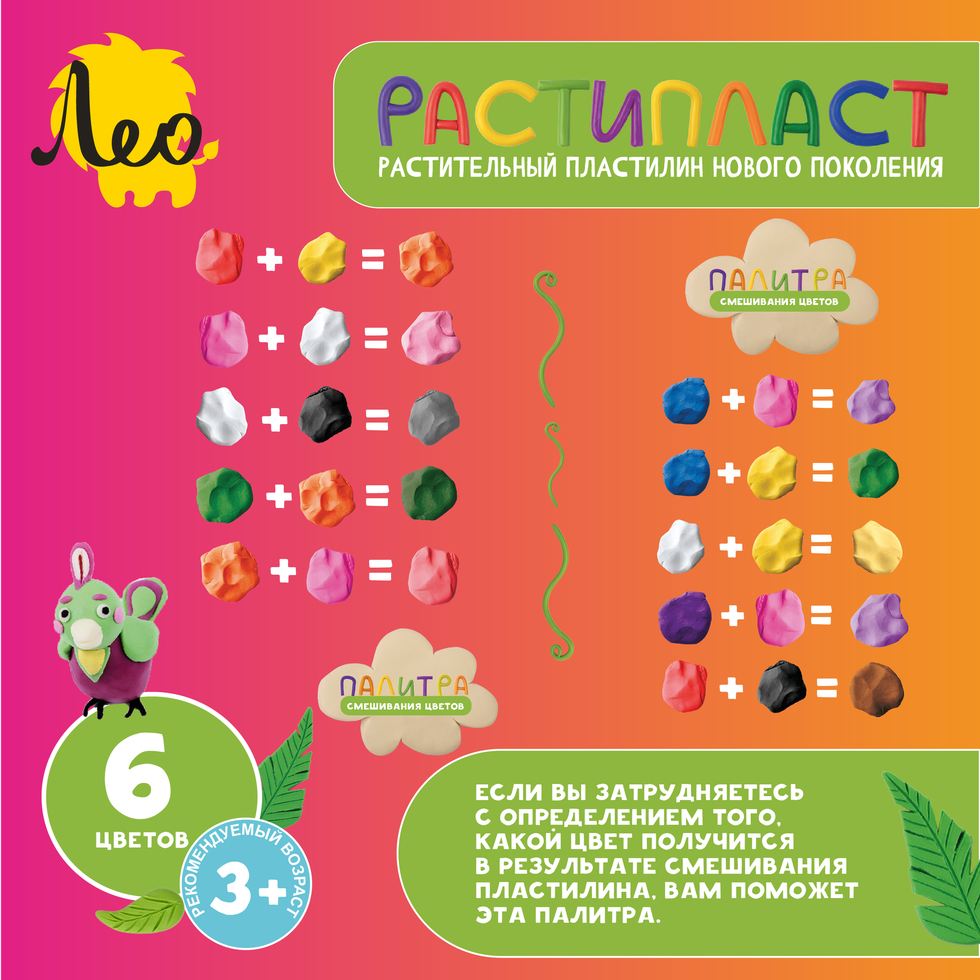 Пластилин мягкий для лепки 6 цветов "Лео" "растипласт" растительный LRP-0106 120 г информация: