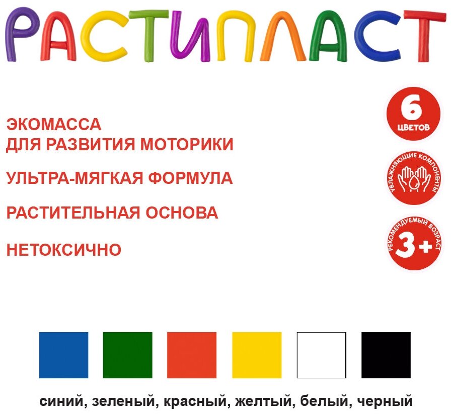 Отзывы на Пластилин мягкий для лепки 6 цветов "Лео" "растипласт" растительный LRP-0106 120 г