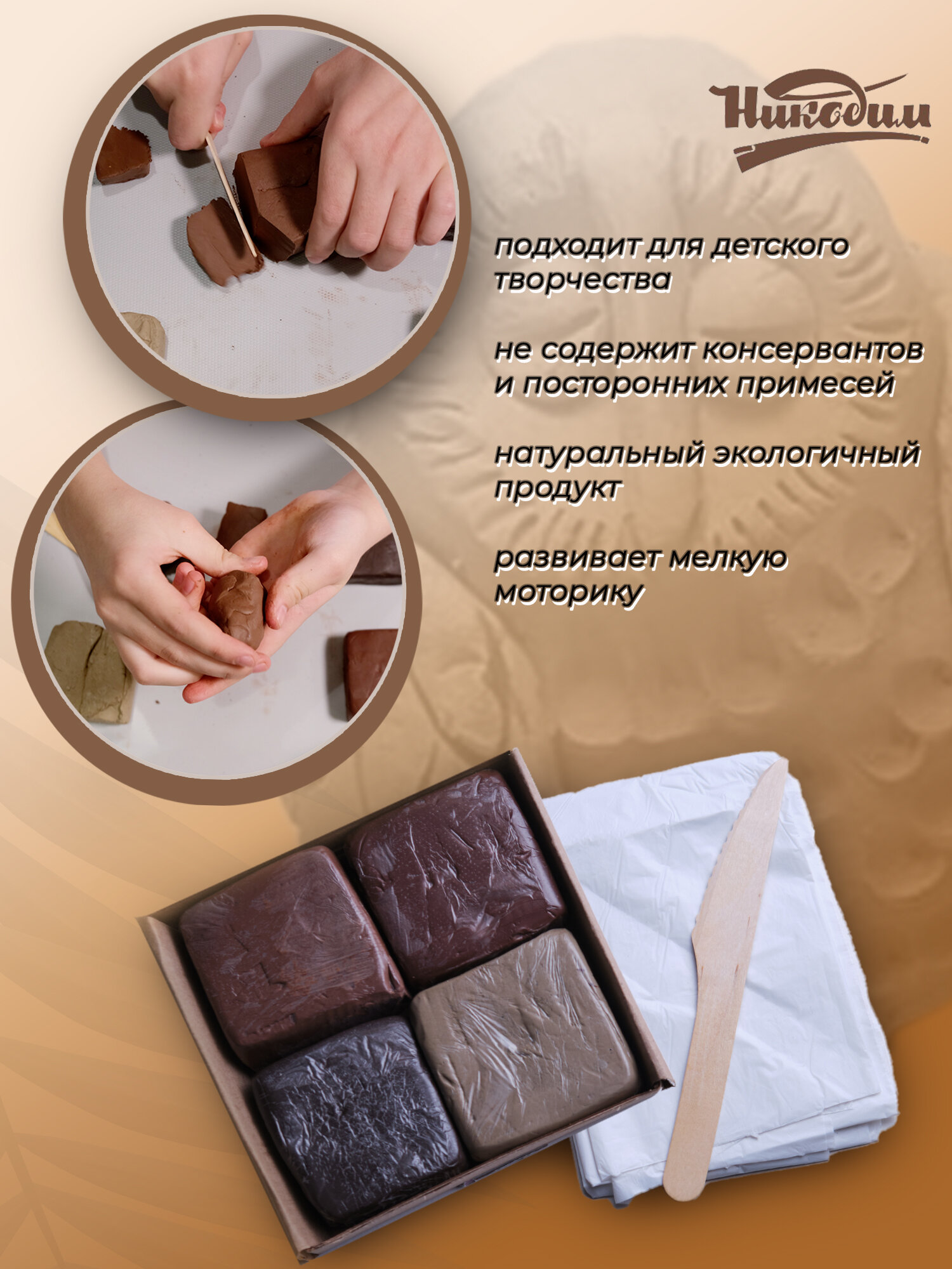Набор натуральной глины для лепки 4 цвета информация: