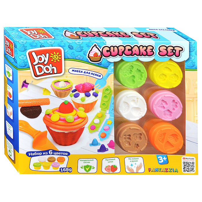 Масса для лепки Joy Doh, набор CUPCAKE SET - любимые пирожные, 3d формы, 18 аксессуаров, 6 баночек KEKS-168 pot информация: