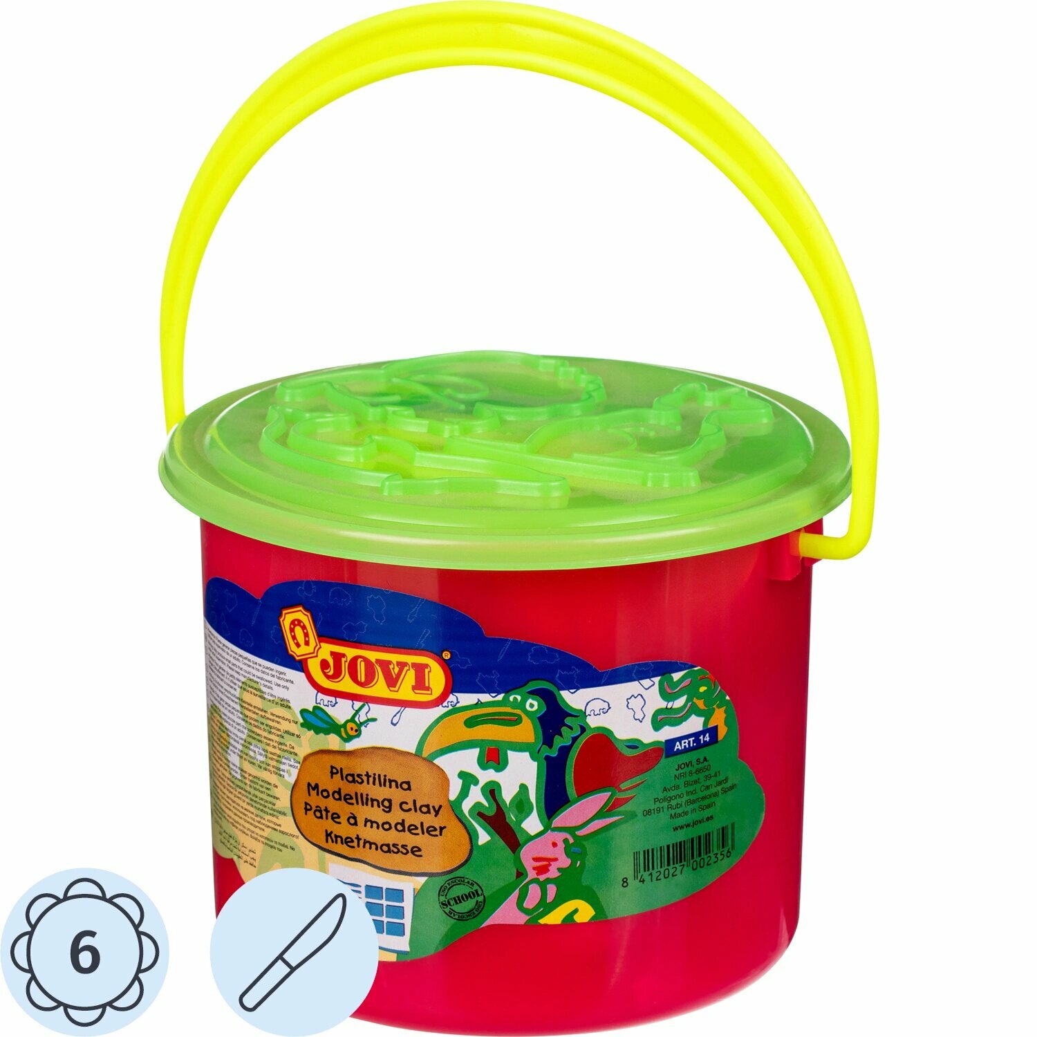 Пластилин JOVI, 6 цв,300г, растительный, формочки, стеки, клеенка, в ведре,14 информация: