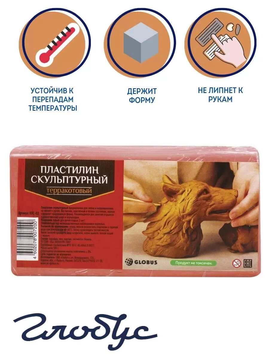 Пластилин Globus скульптурный, терракотовый, 500г (ПЛС-03) 1 цв. информация: