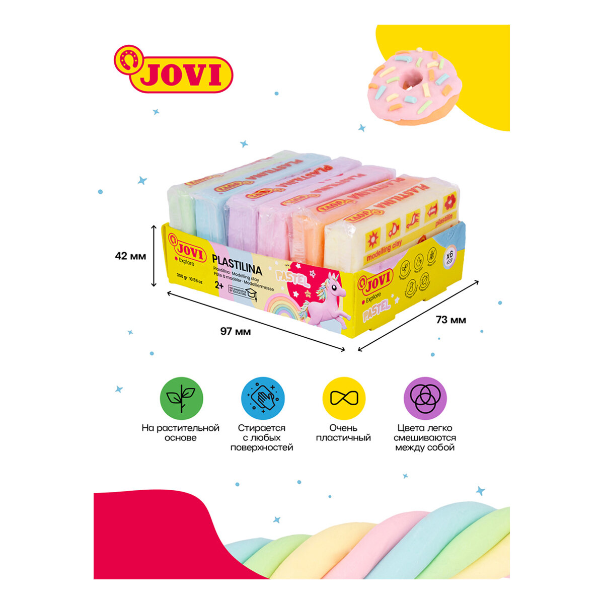 Пластилин JOVI, 6 пастельных цветов, 300г, растительный, картон информация: