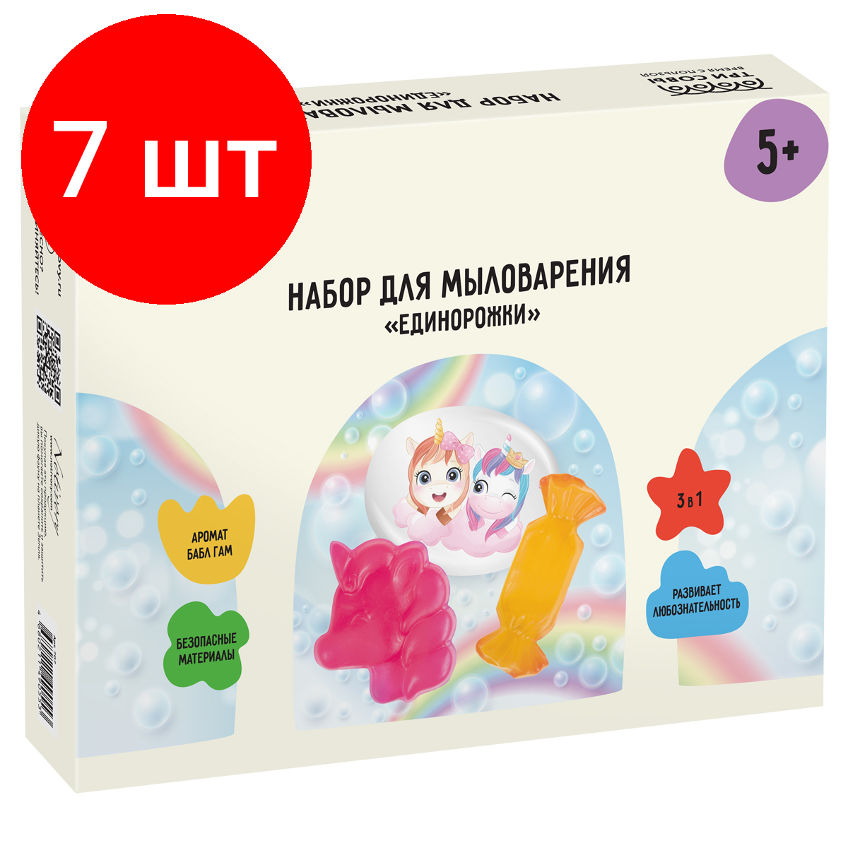 10 цен на Комплект 7 шт, Набор для мыловарения 3в1 ТРИ совы "Единорожки", 1 мыло с картинкой, 2 классических мыла, картонная коробка
