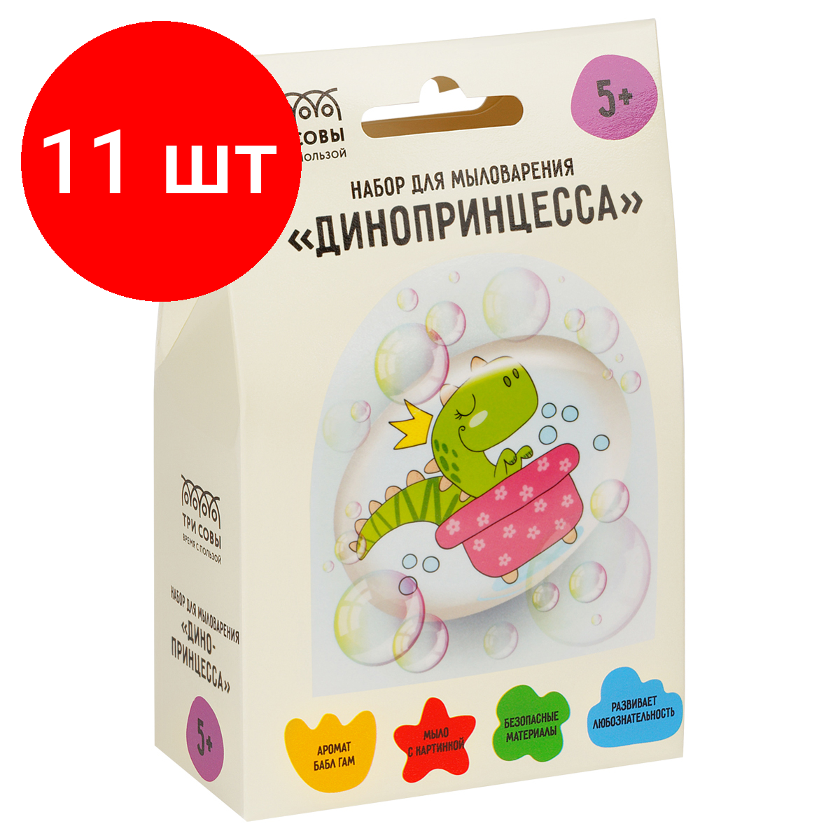 Отзывы на Комплект 11 шт, Набор для мыловарения ТРИ совы "Динопринцесса, 1 мыло с картинкой, картонная коробка