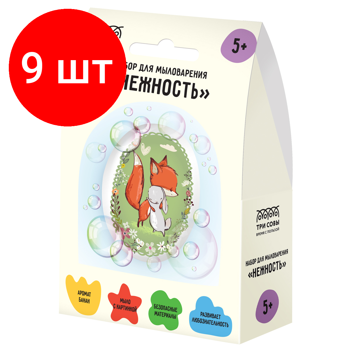 10 цен на Комплект 9 шт, Набор для мыловарения ТРИ совы "Нежность", 1 мыло с картинкой, картонная коробка
