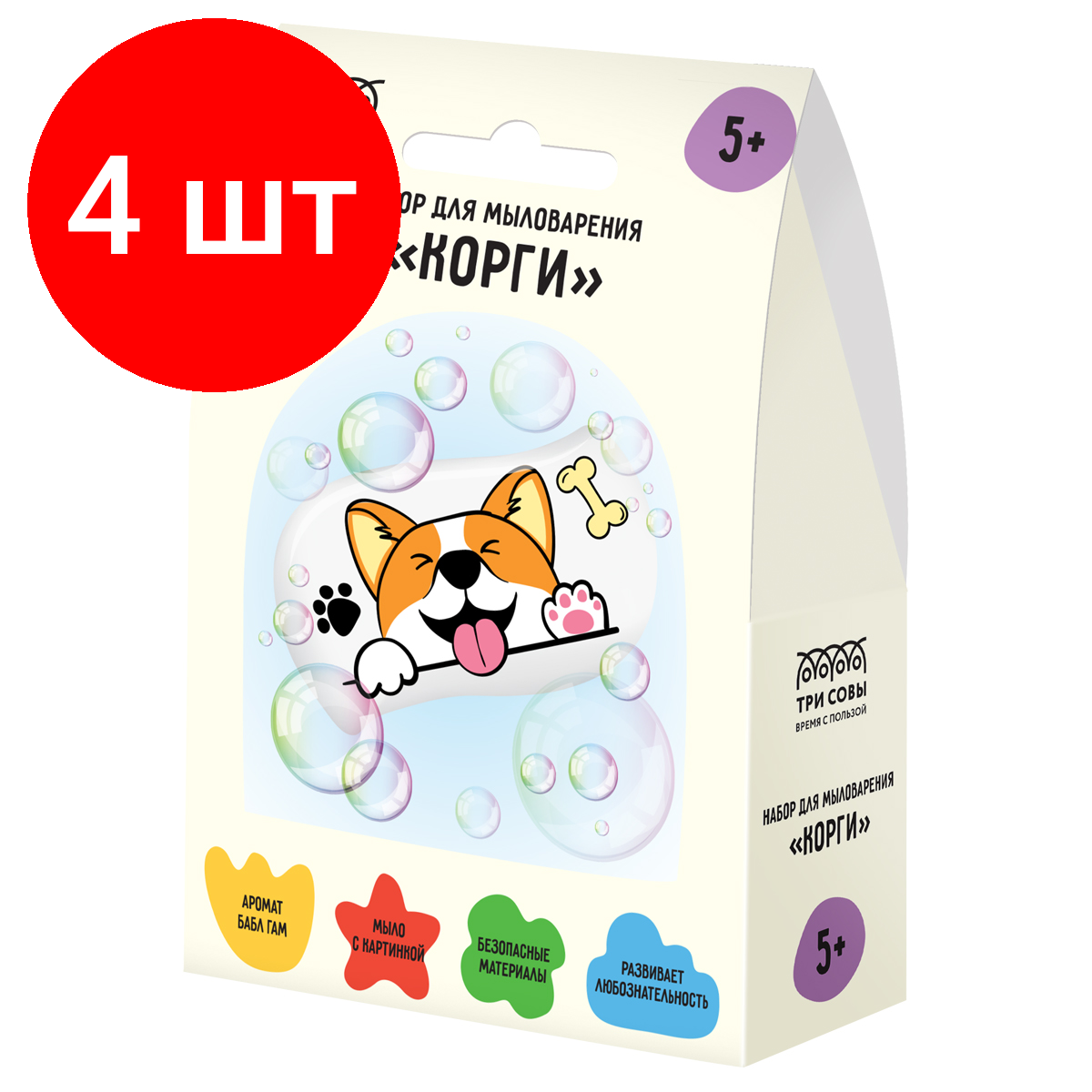 10 цен на Комплект 4 шт, Набор для мыловарения ТРИ совы "Корги", 1 мыло с картинкой, картонная коробка