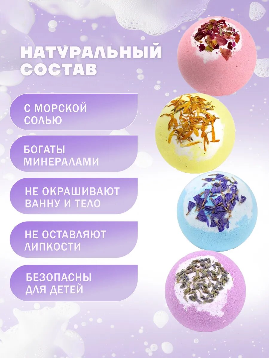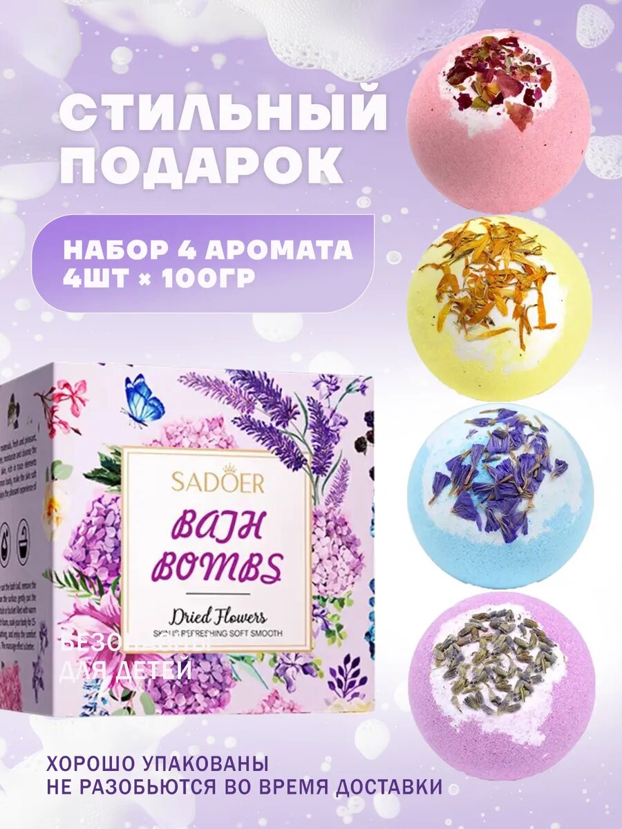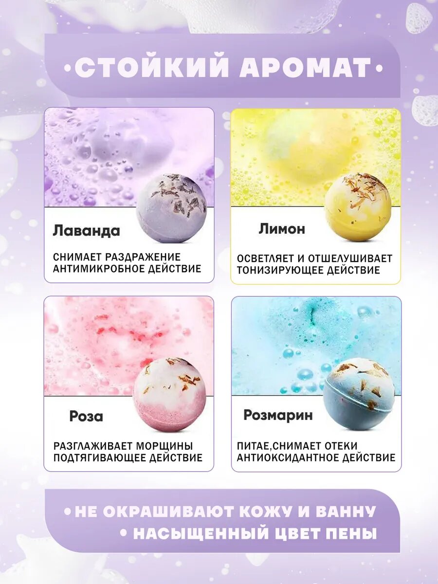 10 цен на Набор ароматических бомбочек SADOER, 4шт, 100г, лаванда, лимон, роза, розмарин