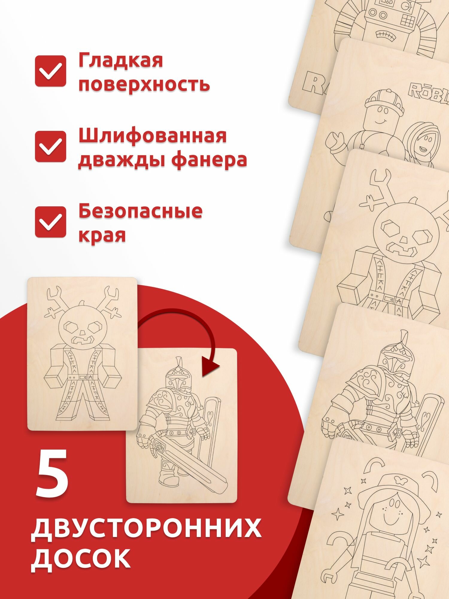 Набор деревянных досок А5 для выжигания по дереву MEGA TOYS детский из фанеры с рисунком Roblox информация:
