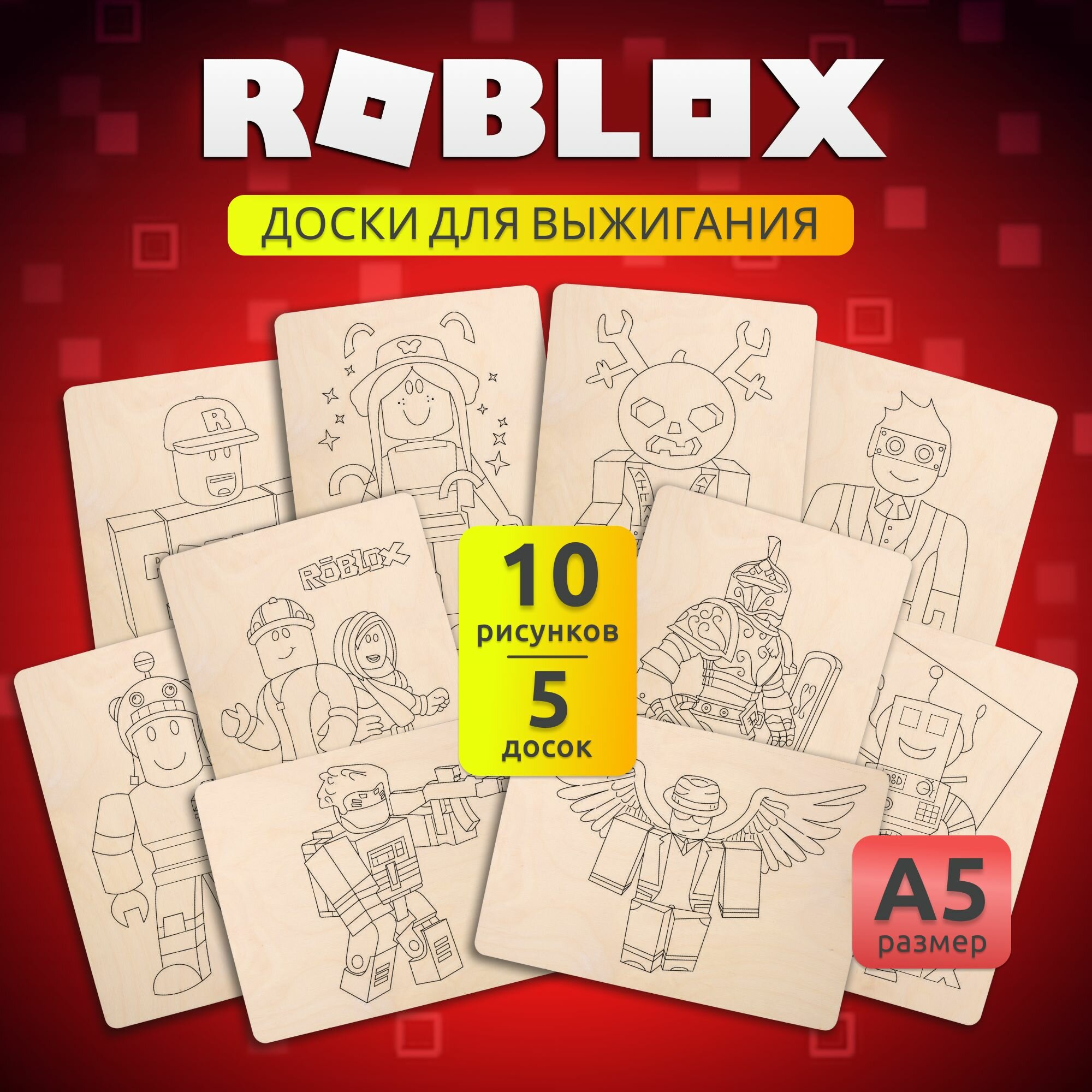 Мы выбрали 10 лучших цен на Набор деревянных досок А5 для выжигания по дереву MEGA TOYS детский из фанеры с рисунком Roblox. Перед тем как купить Набор деревянных досок А5 для выжигания по дереву MEGA TOYS детский из фанеры с рисунком Roblox посмотрите найденные предложения из Яндекс Маркета и других сайтов на основе XML фидов.