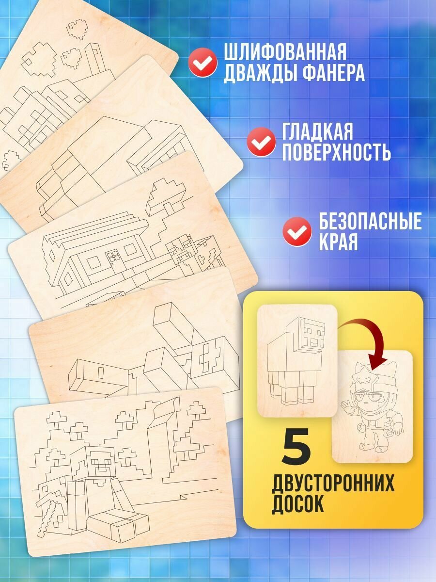 10 цен на Набор деревянных досок из фанеры MEGA TOYS для выжигания по дереву с рисунком Minecraft и Brawl Stars