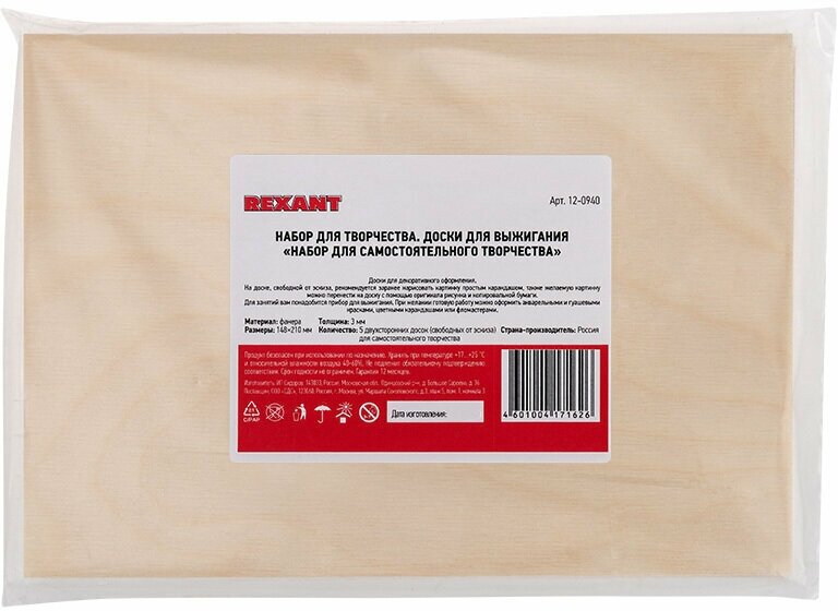 Доски для выжигания REXANT Набор творческий (без рисунка), 148х210 мм (А5), 5 шт. информация: