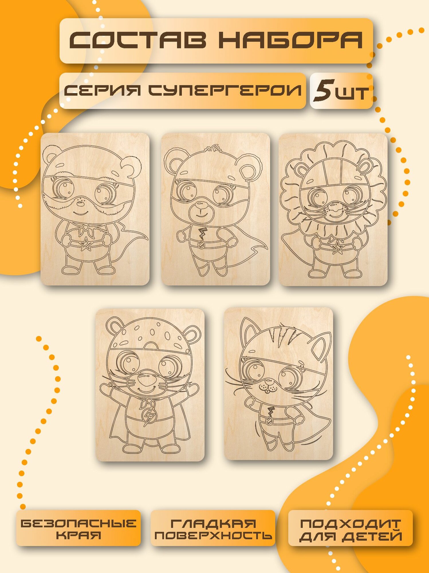 4шт Заготовки деревянные для выжигания "Сказочные мотивы",