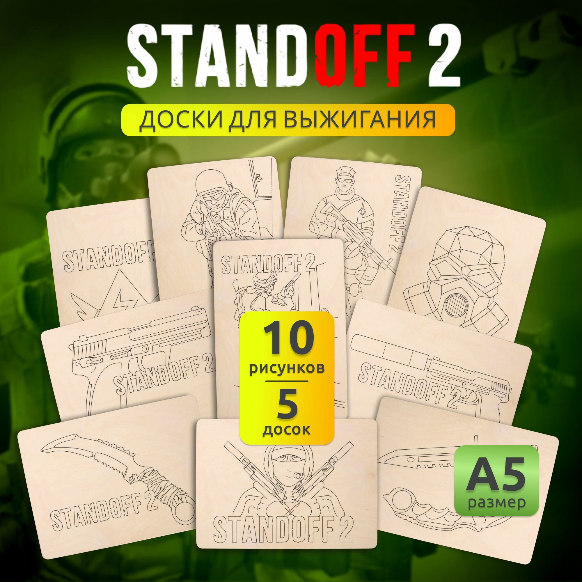 Набор деревянных досок А5 для выжигания по дереву MEGA TOYS детский из фанеры с рисунком Standoff 2 информация: