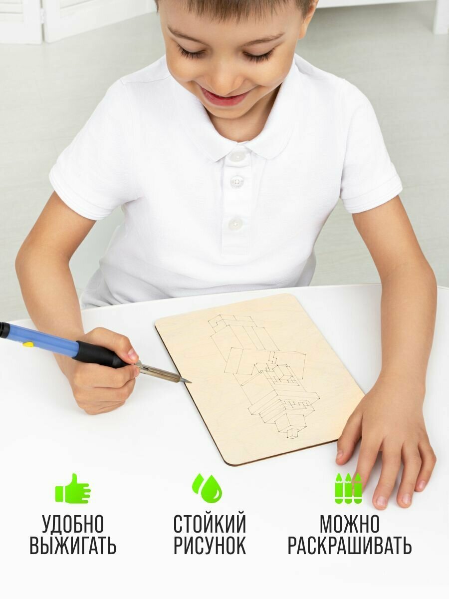 Отзывы на Набор деревянных досок из фанеры MEGA TOYS детский для выжигания по дереву с рисунком Minecraft и Among Us / для мальчиков и девочек для труда в школу