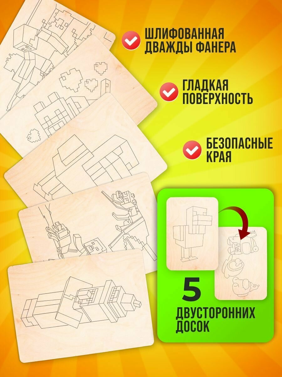10 цен на Набор деревянных досок из фанеры MEGA TOYS детский для выжигания по дереву с рисунком Minecraft и Among Us / для мальчиков и девочек для труда в школу